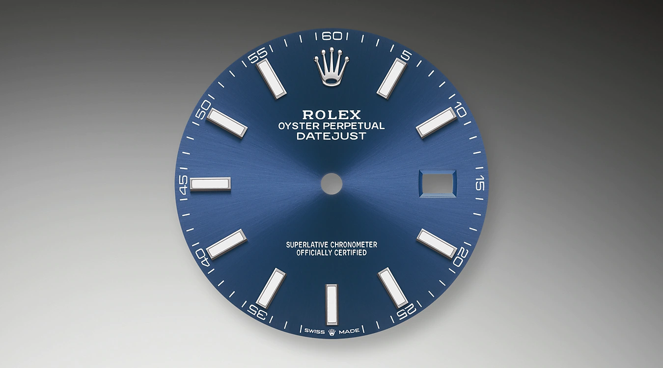 Das Sunray-Finish erzeugt auf vielen Zifferblättern der Oyster Perpetual-Kollektion zarte Lichtreflexe. Es wird durch meisterhafte Bürsttechniken erzielt, die Rillen erzeugen, die von der Mitte des Zifferblatts nach außen verlaufen. Das Licht wird gleichmäßig entlang jeder Gravur gestreut und erzeugt ein charakteristisches subtiles Leuchten, das sich je nach Position des Handgelenks bewegt.