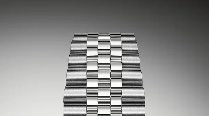 The design, development and production of Rolex bracelets and clasps, as well as the rigorous testing they undergo, involve advanced cutting-edge technology. And as with all components of the watch, aesthetic scrutiny by the human eye guarantees flawless beauty. A supple and comfortable five-link metal bracelet, the Jubilee was specially designed and crafted for the launch of the Oyster Perpetual Datejust in 1945.