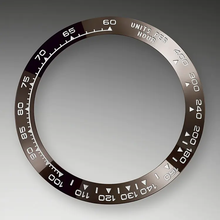Ein wichtiger Teil der Identität des Modells ist die Lünette mit einer Tachometerskala zur Messung von Durchschnittsgeschwindigkeiten von bis zu 400 Meilen oder Kilometern pro Stunde. Die Monobloc-Lünette Cerachrom aus Hightech-Keramik bietet eine Reihe von Vorteilen: Sie ist korrosionsbeständig, praktisch kratzfest und die Farbe wird von UV-Strahlen nicht beeinträchtigt. Diese extrem langlebige Lünette bietet auch eine außergewöhnlich gut lesbare Tachymeterskala, dank der Aufbringung einer dünnen Platinschicht auf den Ziffern und der Graduierung durch einen PVD-Prozess (Physical Vapour Deposition). Die Monobloc-Cerachrom-Lünette ist aus einem Stück gefertigt und hält das Glas fest auf dem mittleren Gehäuse und gewährleistet so die Wasserdichtigkeit.