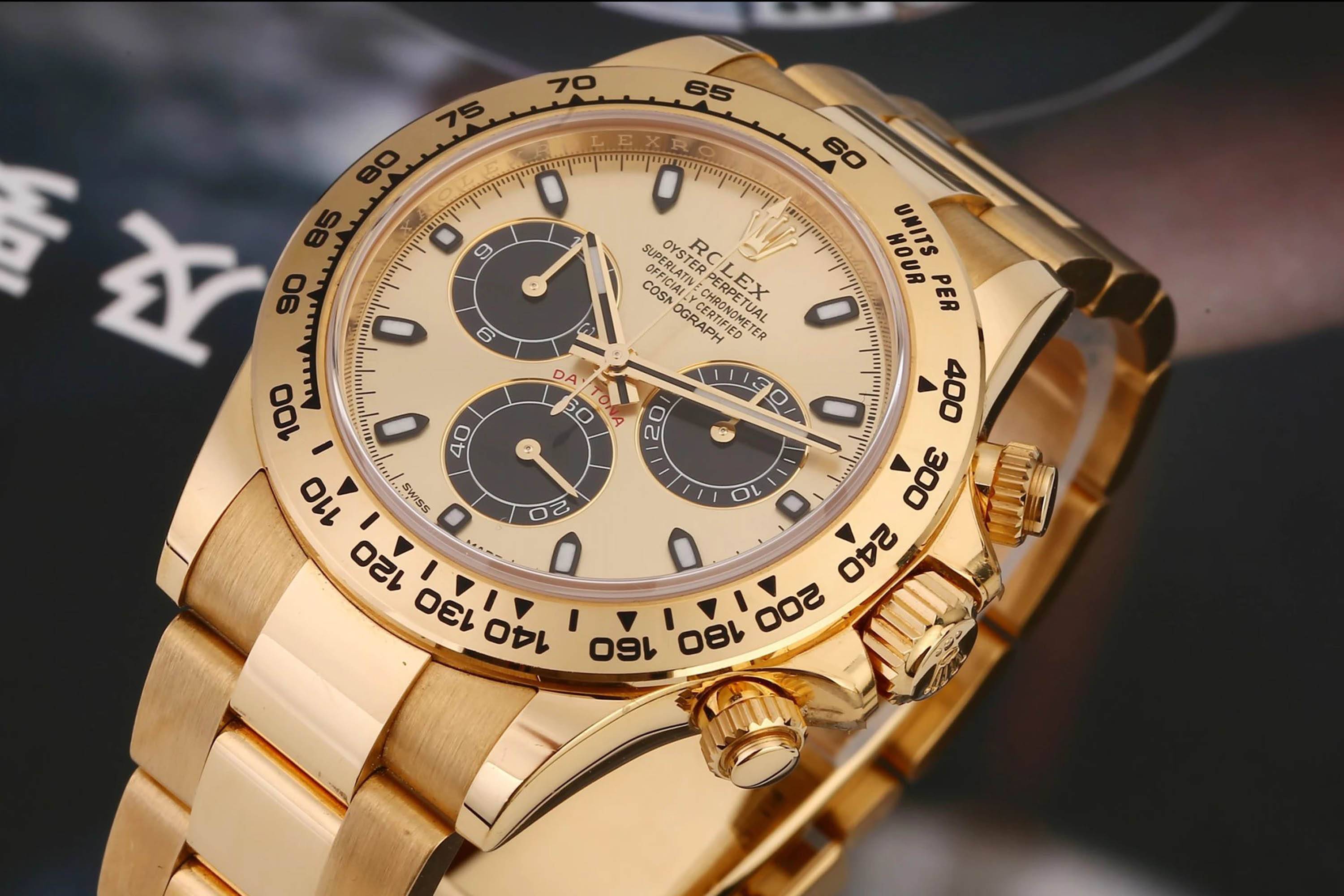 Mit seiner Tachymeterskala, seinen drei Zählern und seinen Drückern wurde der Cosmograph Daytona als ultimatives Zeitmessgerät für Langstrecken-Rennfahrer entwickelt. Die Lünette verfügt über eine Tachymeterskala zum Ablesen der Durchschnittsgeschwindigkeit über eine bestimmte Distanz basierend auf der verstrichenen Zeit.