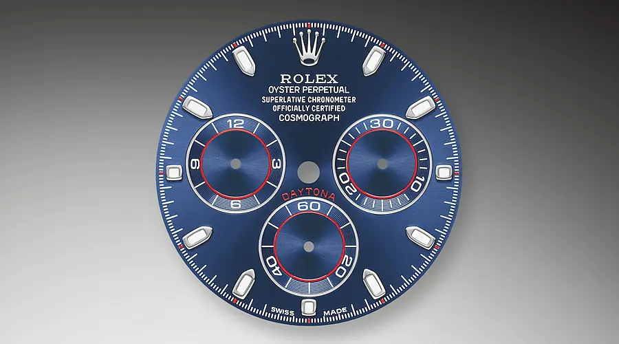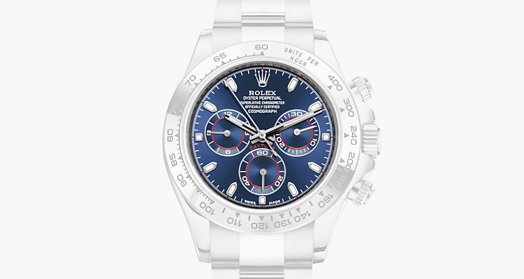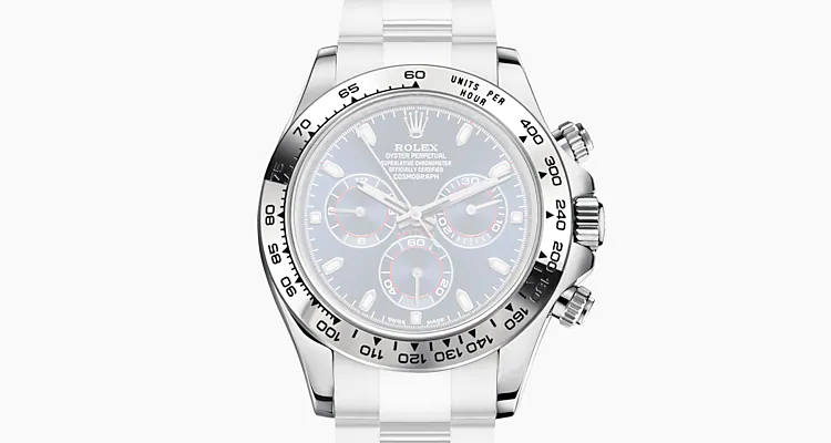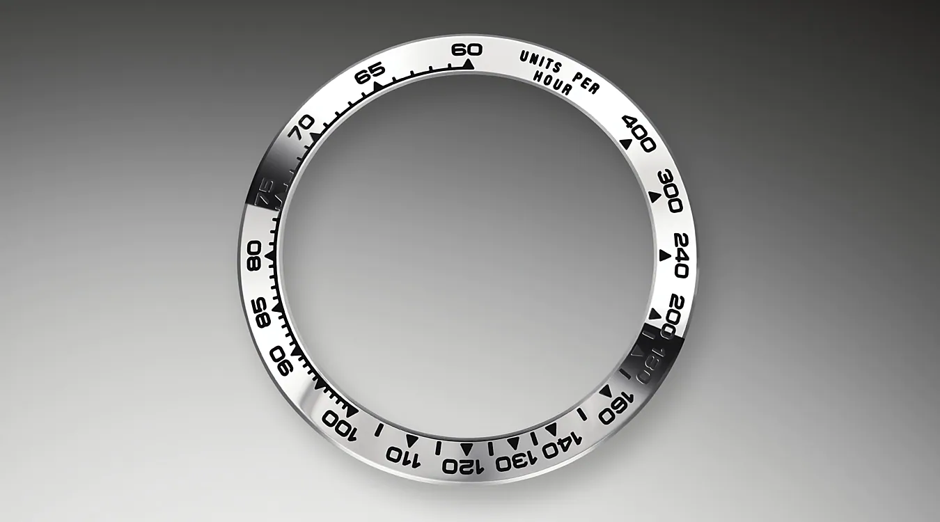 Mit seiner Tachymeterskala, seinen drei Zählern und seinen Drückern wurde der Cosmograph Daytona als ultimatives Zeitmessgerät für Langstrecken-Rennfahrer entwickelt. Die Lünette verfügt über eine Tachymeterskala zum Ablesen der Durchschnittsgeschwindigkeit über eine bestimmte Distanz basierend auf der verstrichenen Zeit. Diese Skala bietet eine optimale Ablesbarkeit und macht den Cosmograph Daytona zum idealen Instrument zur Messung von Geschwindigkeiten bis zu 400 Einheiten pro Stunde, ausgedrückt in Kilometern oder Meilen.