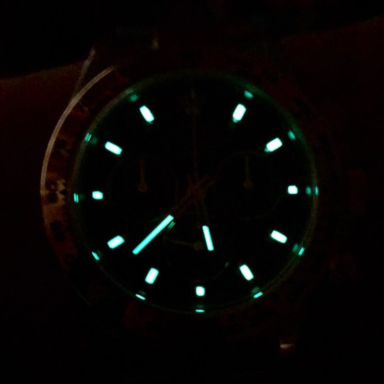 Rolex Daytona Swiss Replica Uhren sind mit dem neuen Leuchtpigment SuperLuminova™ Blue Glow ausgestattet, das nach ausreichender Aktivierung durch Sonnen- oder Kunstlicht im Dunkeln bis zu neun Stunden durchgehend mit gleichmäßiger Leuchtkraft leuchtet.
