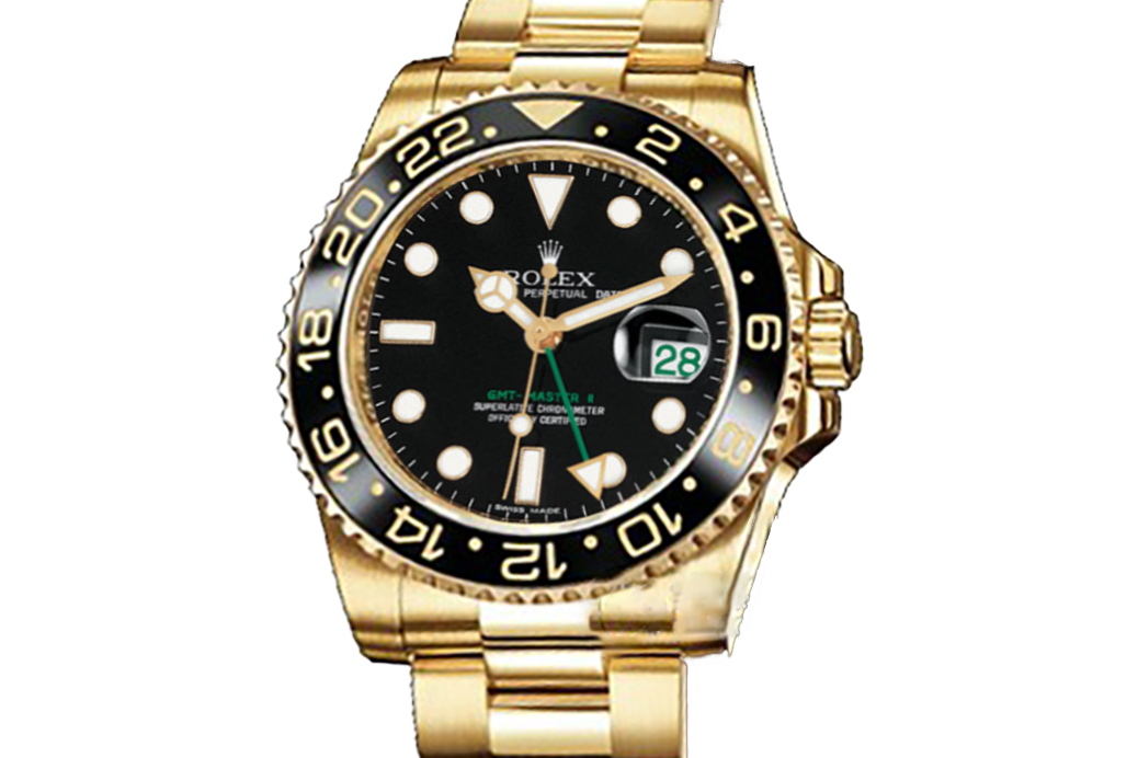 Wie alle Professional-Uhren bietet die GMT-Master II dank ihres Chromalight-Displays unter allen Umständen und insbesondere im Dunkeln eine hervorragende Lesbarkeit. Die breiten Zeiger und Indexe in einfachen Formen – Dreiecke, Kreise, Rechtecke – sind mit einem lumineszierenden Material gefüllt, das einen langanhaltenden Glanz ausstrahlt.