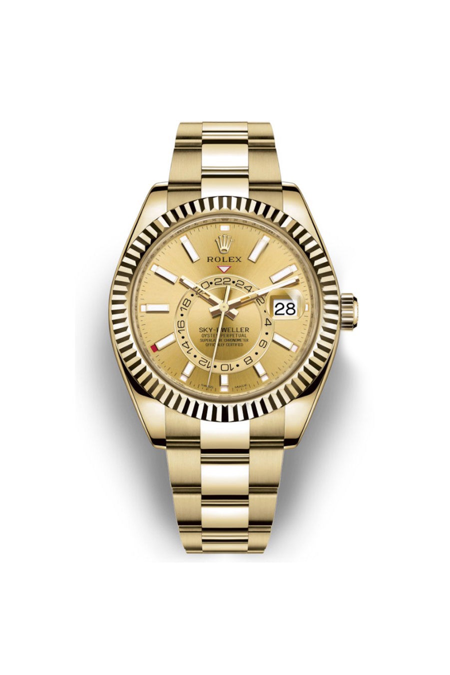 Die geriffelte Lünette von Rolex ist ein Erkennungszeichen. Ursprünglich hatte die Riffelung der Oyster-Lünette einen funktionalen Zweck: Sie diente dazu, die Lünette mit dem Gehäuse zu verschrauben und so die Wasserdichtigkeit der Uhr zu gewährleisten. Es war daher identisch mit der Riffelung auf dem Gehäuseboden, die ebenfalls mit speziellen Rolex-Werkzeugen auf das Gehäuse geschraubt wurde, um die Wasserdichtigkeit zu gewährleisten. Im Laufe der Zeit wurde die Riffelung zu einem ästhetischen Element, einem echten Markenzeichen von Rolex. Heute ist die geriffelte Lünette ein Erkennungszeichen, immer in Gold.