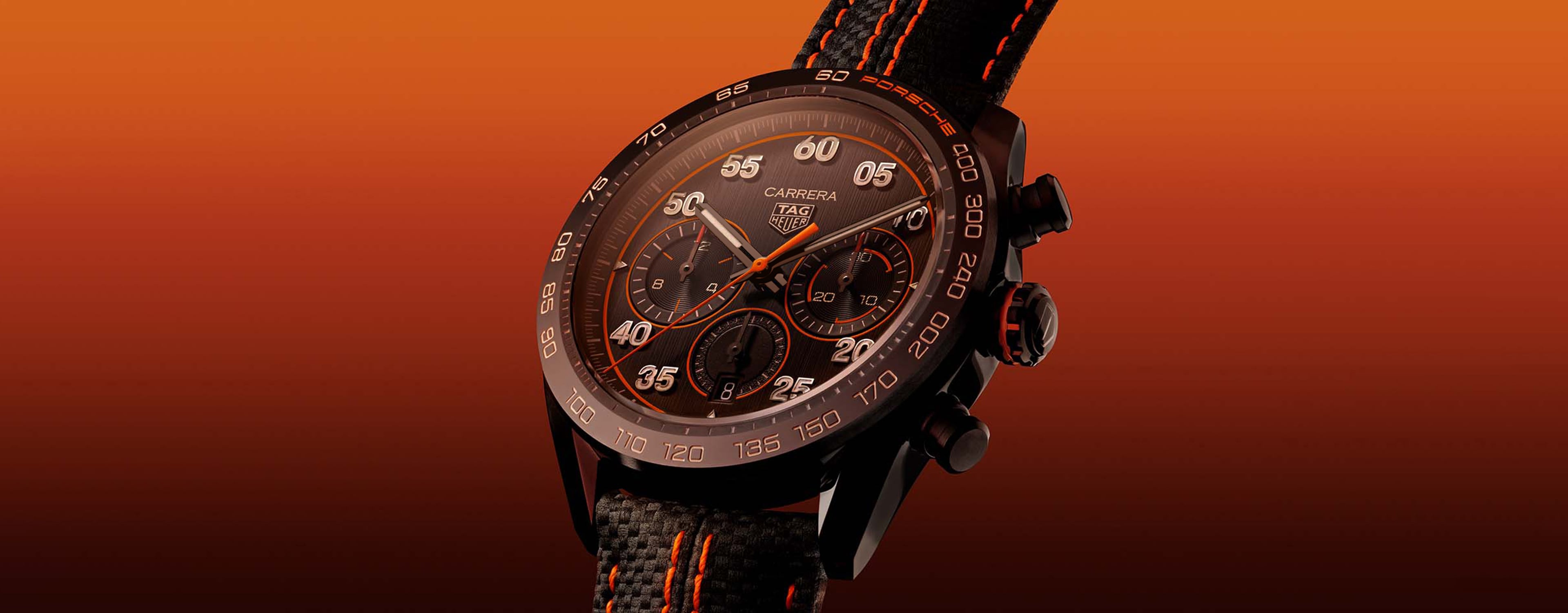 Speed is the name of the game with this special edition TAG Heuer Carrera Porsche. Paying homage to TAG Heuer and Porsche’s shared passion for racing, it’s distilled in a bright orange inspired by the color of hot sparks a car makes on asphalt. Victory is at hand.