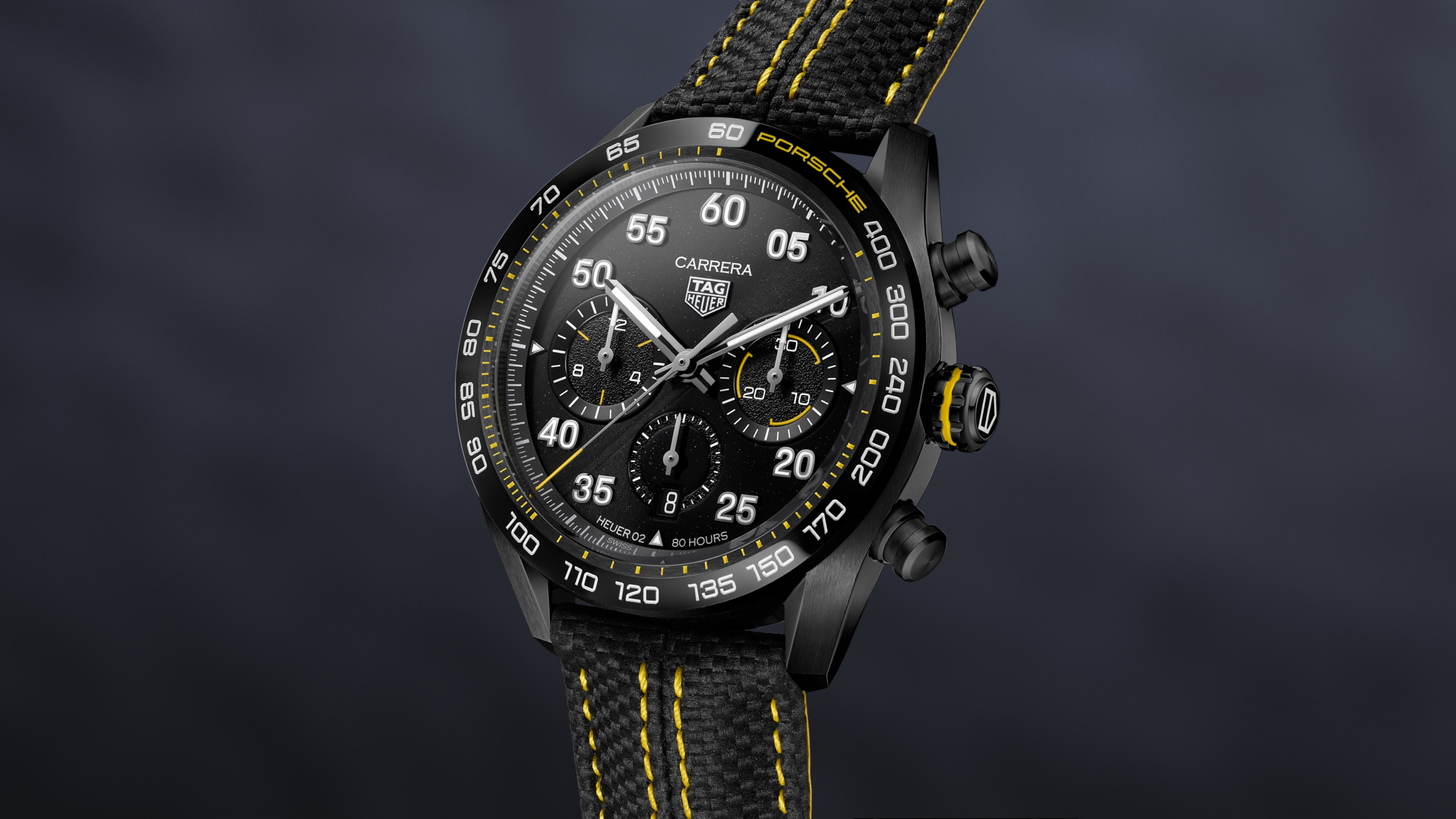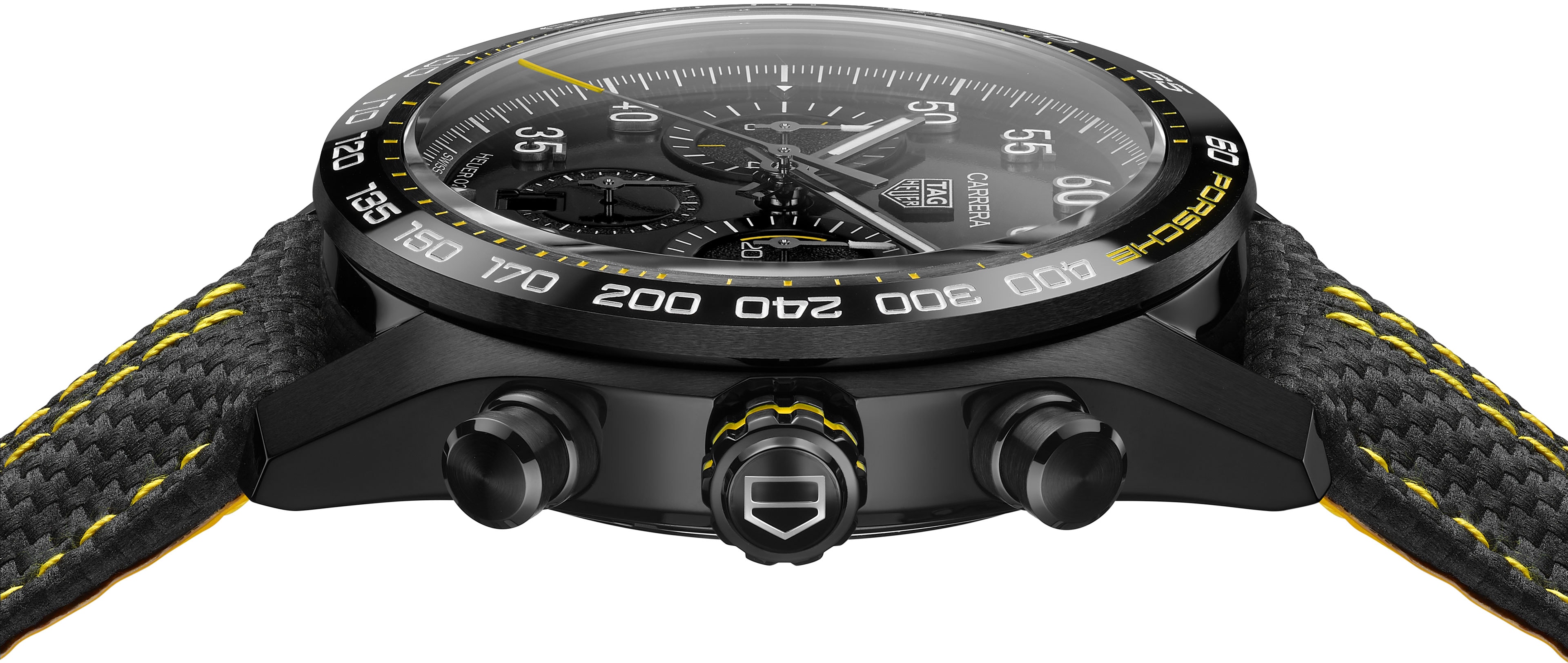 Born from the iconic collaboration between the two brands, the TAG Heuer Carrera Porsche Limited Edition embodies innovation, prestige and compelling luxury. The distinctive shiny black dial has a bold look, drawing inspiration from Porsche's distinctive bodywork.